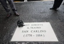Targa commemorativa del Teatro San Carlino, la Napoli di ieri e di oggi
