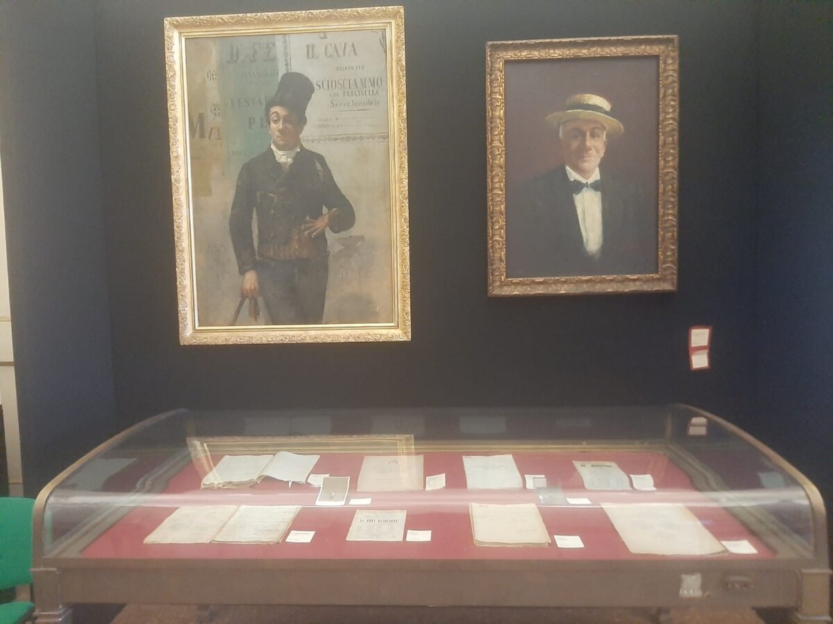 Esposti all’ammirazione del pubblico nelle teche, sono in primis numerosissime locandine d’epoca degli spettacoli (oggi conservate presso la Lucchesi Palli) complete di cast e listino prezzi, che ricostruiscono una panoramica scarpettiana completa dal 1870, con “Pulcinella creduto moglie di un finto marito”, al 1923, con “Nu disastro ferroviario scritto con Rovito”. Di estremo rilievo le prime edizioni di sceneggiature e copioni manoscritti inediti rinvenuti da Mariano d’Amora nell’archivio privato di Scarpetta: si è dinanzi a stesure originali corredate di firma, date, lista interpreti, correzioni al testo e note di regia che l’Autore era solito appuntare. A questi s’aggiungono le cronache teatrali, le lettere, le raccolte poetiche: “Lo poeta napulitano” del 1872 e “Poesie di D. Felice Sciosciammocca” del 1874, nonché i diari privati dell’Autore, da quelli domestici, nei quali Scarpetta annotava le piccole spese quotidiane, alle infinite riflessioni e annotazioni di teoria teatrale e pratica di scena.