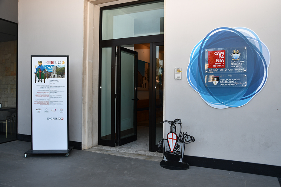 Il 7 settembre, Terre di Campania APS ha dato vita ad un meraviglioso momento di divulgazione e confronto sui temi della Bellezza, dell’Arte, della Storia, presso il Laboratorio Culturale “Campania Bellezza del Creato” nel Santuario di Madonna dell’Arco a Sant’Anastasia (NA). Protagonista di questi appassionanti momenti è stato l’evento culturale “Immagini come Appunti di Viaggio”, che ha garantito al pubblico un contatto diretto con la storia dei nostri castelli, tramite la raccolta fotografica realizzata da Giuseppe Ottaiano lungo i suoi viaggi nella Campania tutta, e con la storia di Federico II Re di Svevia, grazie alla mostra d’arte “Stupor Mundi” dell’artista Gustavo Delugan, che raccoglie tutte le opere dell’artista dedicate al sovrano del XIII secolo.
