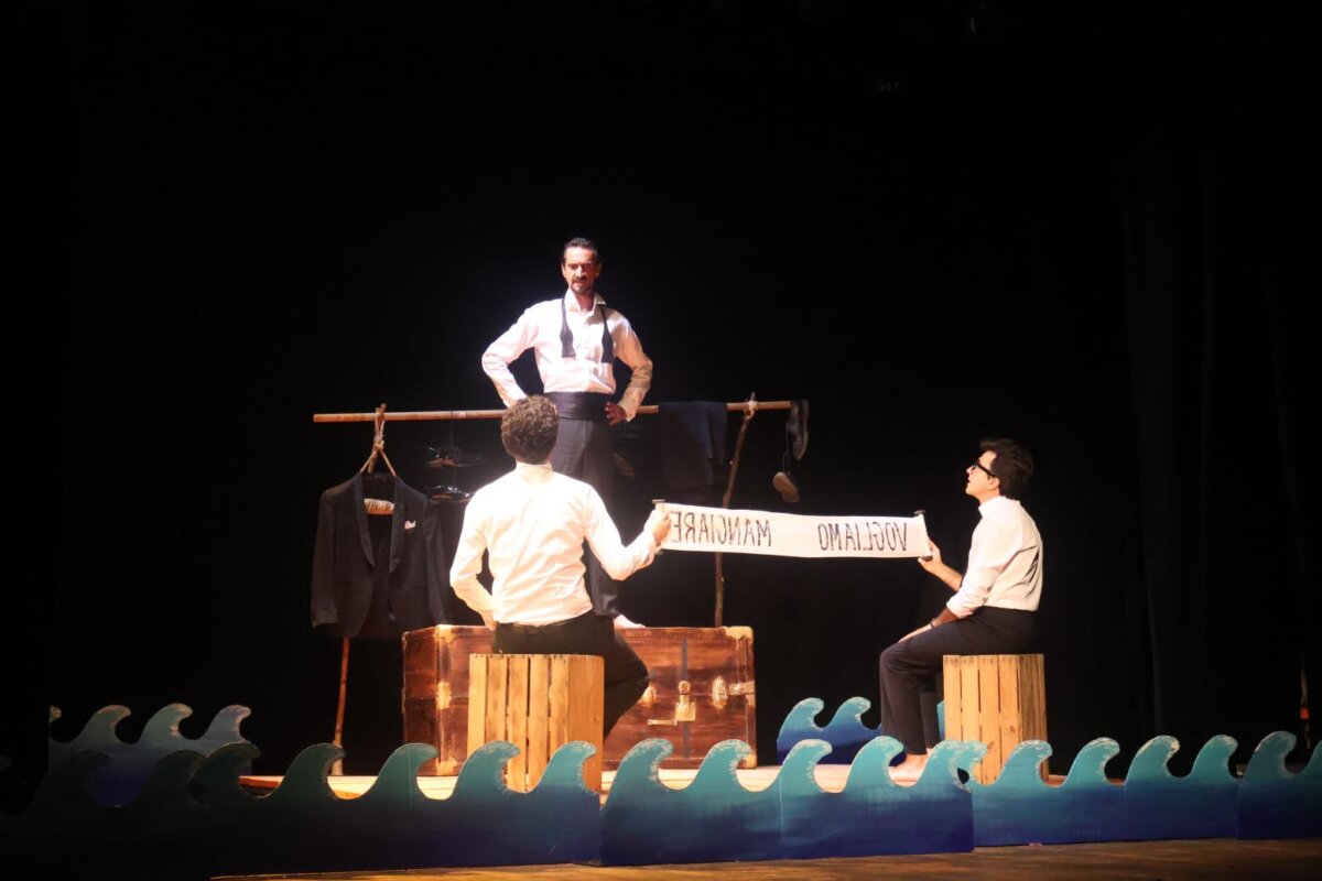 Gianfelice Imparato ne cura la regia, Giuseppe Borrelli, Luigi Credendino, Cristian Izzo, Renato Marrazzo, Arturo Antonio Ruggiero reggono il palcoscenico per tutta la durata della pièce, confinati su una zattera di legno in un mare immobile e indifferente alla tragedia che sta avvenendo su quelle tavole.